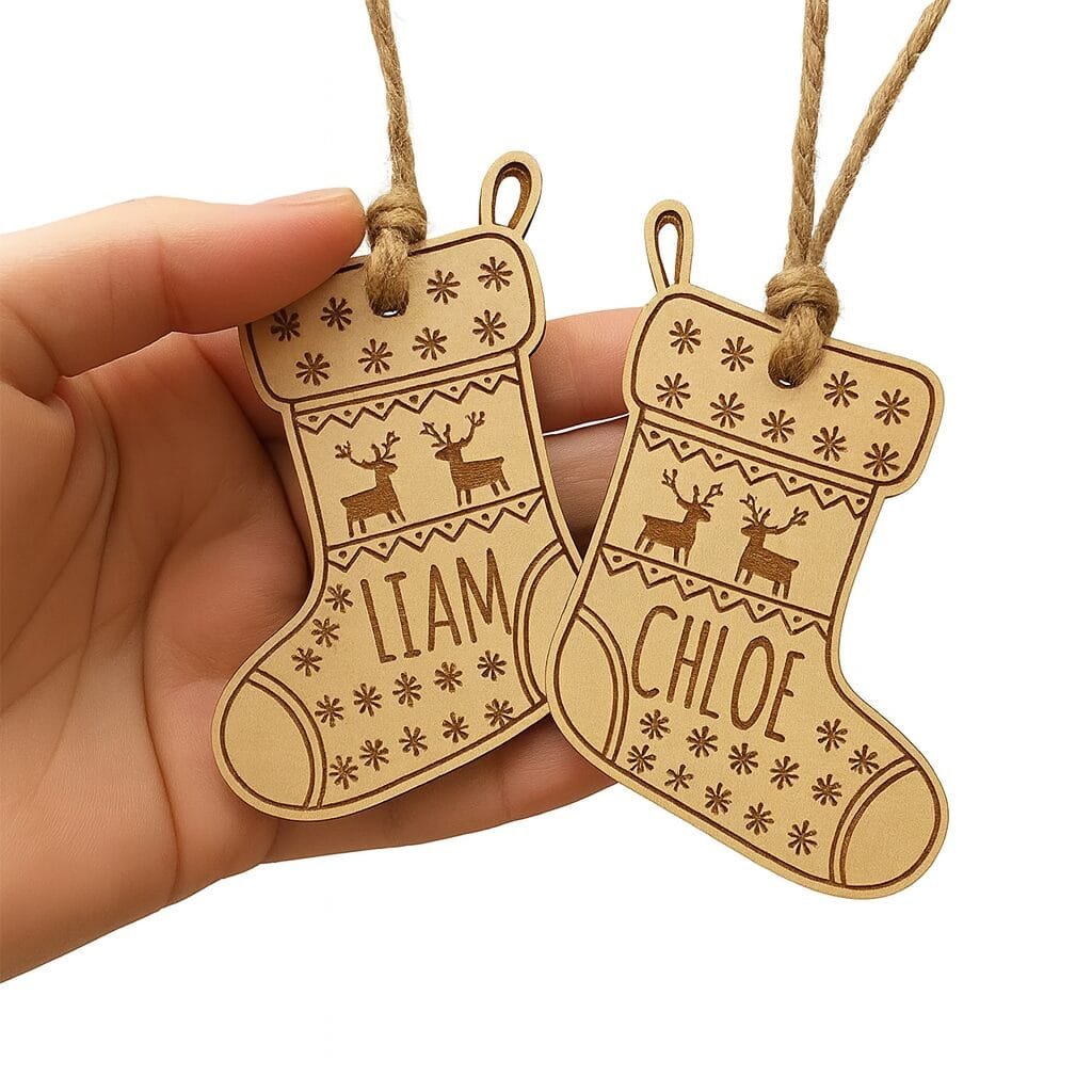 Este encantador adorno navideño, elaborado en madera de alta calidad, es el detalle perfecto para dar un toque cálido y único a tu árbol, regalos o decoración del hogar.